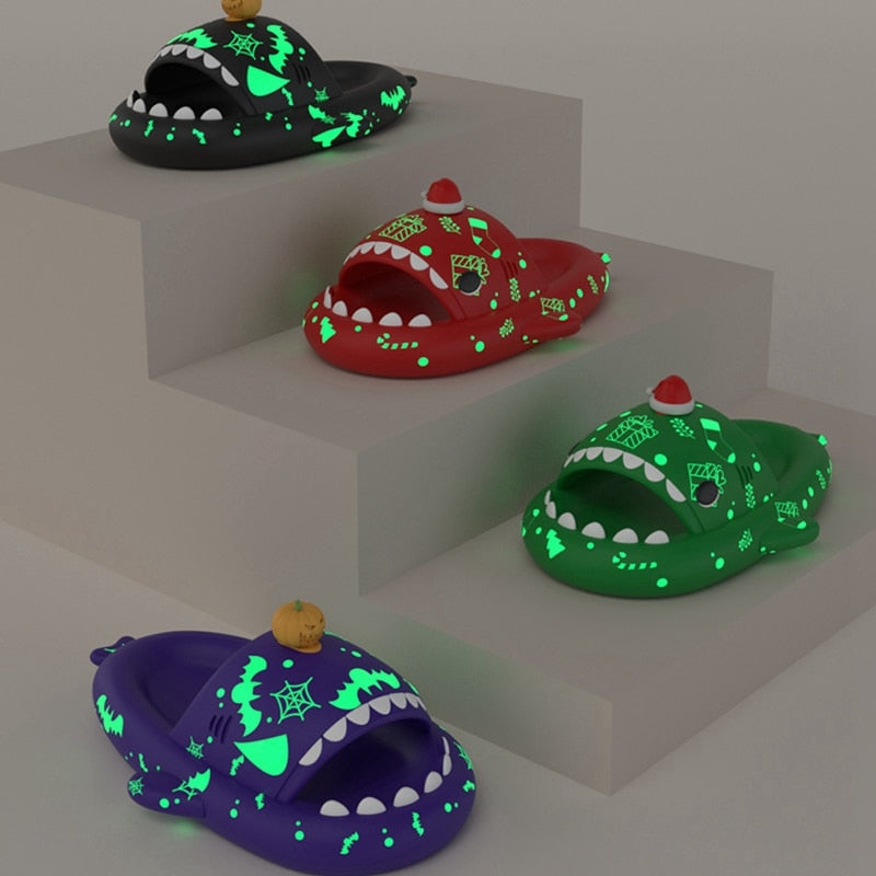 Introducing Luminous Shark Slippers, the perfect gift for your loved ones this holiday season. Whether you're looking for a creative surprise or a stylish addition to any footwear collection, these slippers won't disappoint! Made with a carefully designed combination of plush and fabric, these slippers are as soft as they are cute. The fun shark design will bring out the playful side in anyone who wears them. Thanks to its convenient slip on design, they can easily be put on and taken off with ease. Not only will they keep your feet warm but also add a touch of charm to any outfit; making them a must have accessory this winter. Get ready to step into comfort and style with arrival Luminous Shark Slippers.