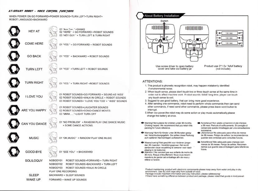 Are you looking for a new and unique way to keep your family entertained? Look no further than the AT001 Interactive Toy Robot! This adorable robot comes in five different colors and is perfect for both adults and children. The AT robot recognizes simple voice commands and responds to your commands. AT robots will talk, sing, dance and be your child’s good friend. So what are you waiting for? Order your AT001 Interactive Toy Robot today!